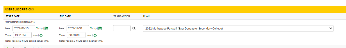 - Go to the student's user subscription panel.