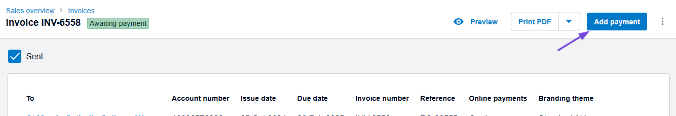 Recording a payment in Xero
